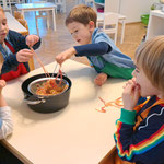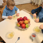 Am Nachmittag duftete es in unserem Montessori-Kinderhaus herrlich nach Äpfeln, Zimt und Nelken! Eine Familie brachte uns eine große Gartenspende, und die Kinder verwandelten die Äpfel mit viel Freude und Selbstständigkeit in frischen Apfelsaft und leckeres Kompott.
