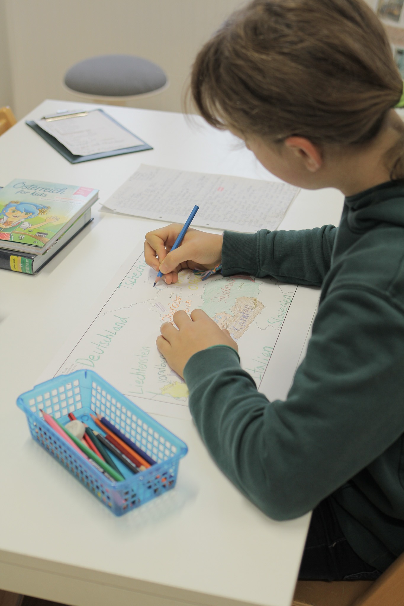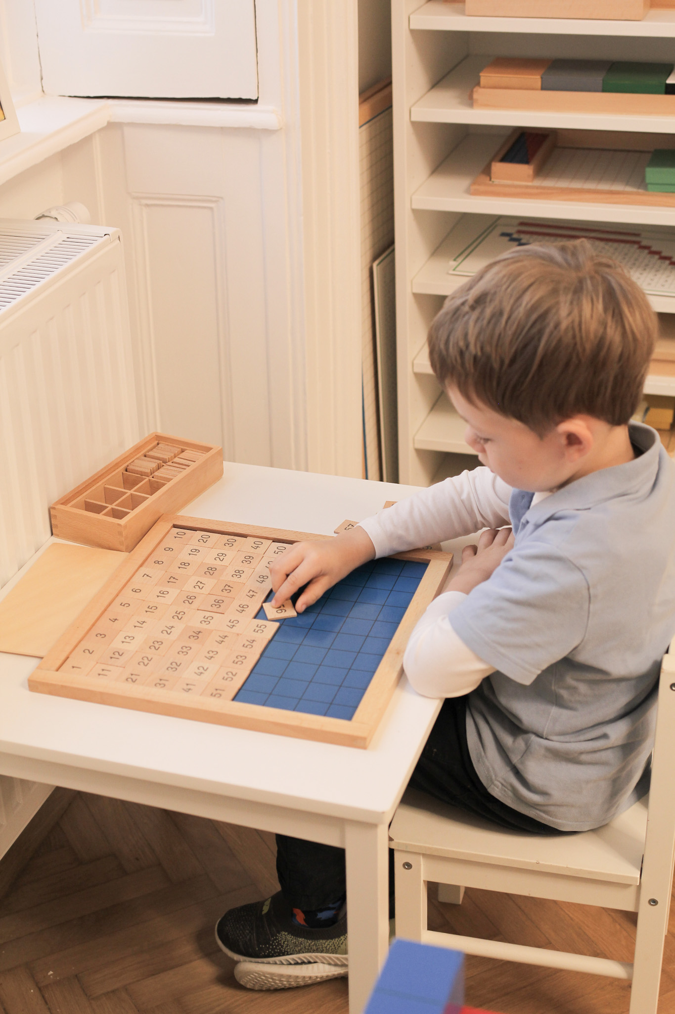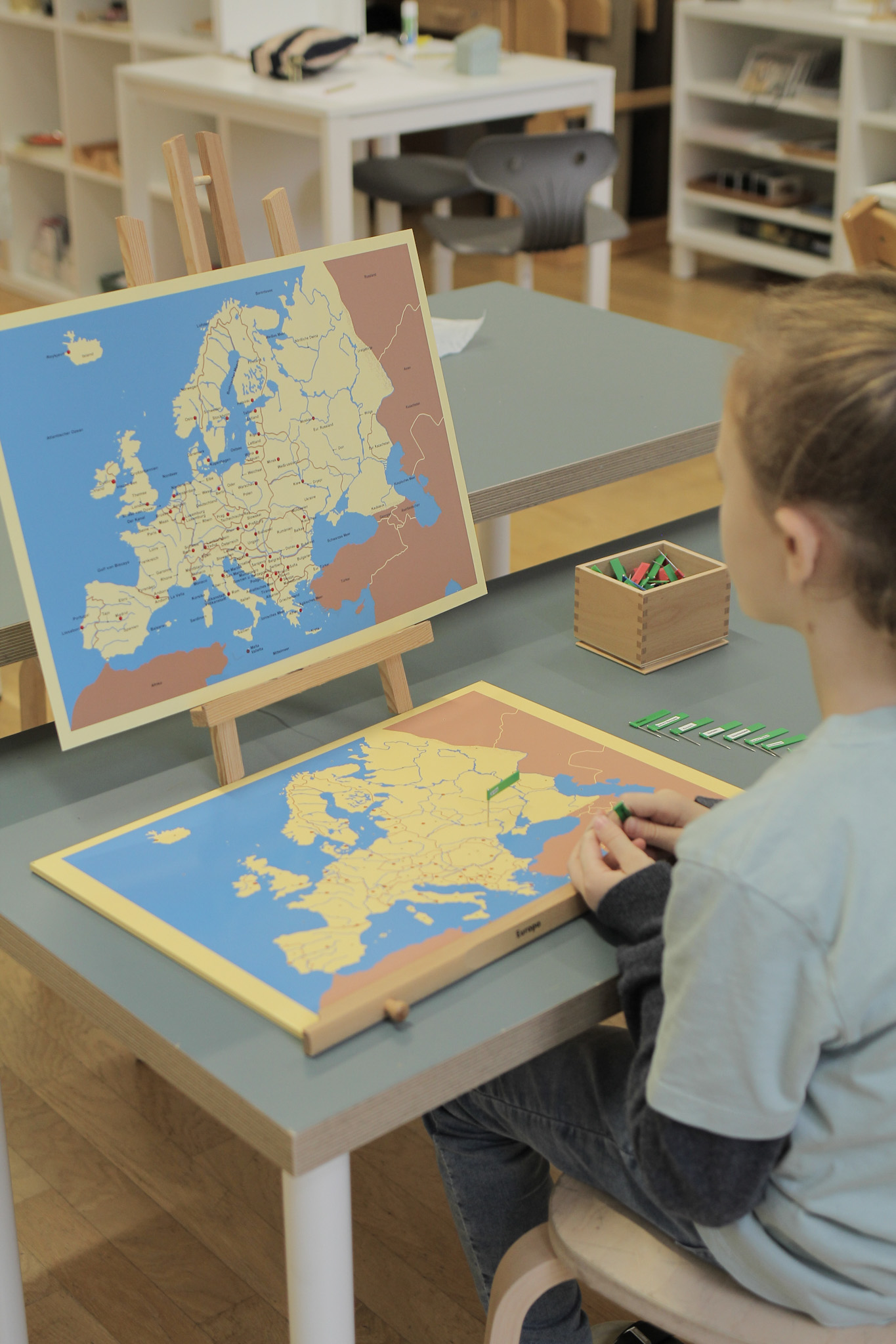 Während in der Kleinkindgemeinschaft etwa eine Stunde konzentriertes Arbeiten stattfindet, genießen die Schulkinder täglich mindestens drei Stunden ungestörte Arbeitszeit. In dieser Zeit wählen sie selbst, womit sie sich beschäftigen – ganz nach ihren Interessen. Ob Mathematik, Sprache, Naturwissenschaft oder kreatives Gestalten: die Kinder folgen ihrem inneren Lerntrieb.